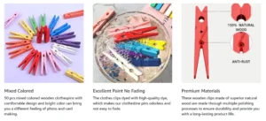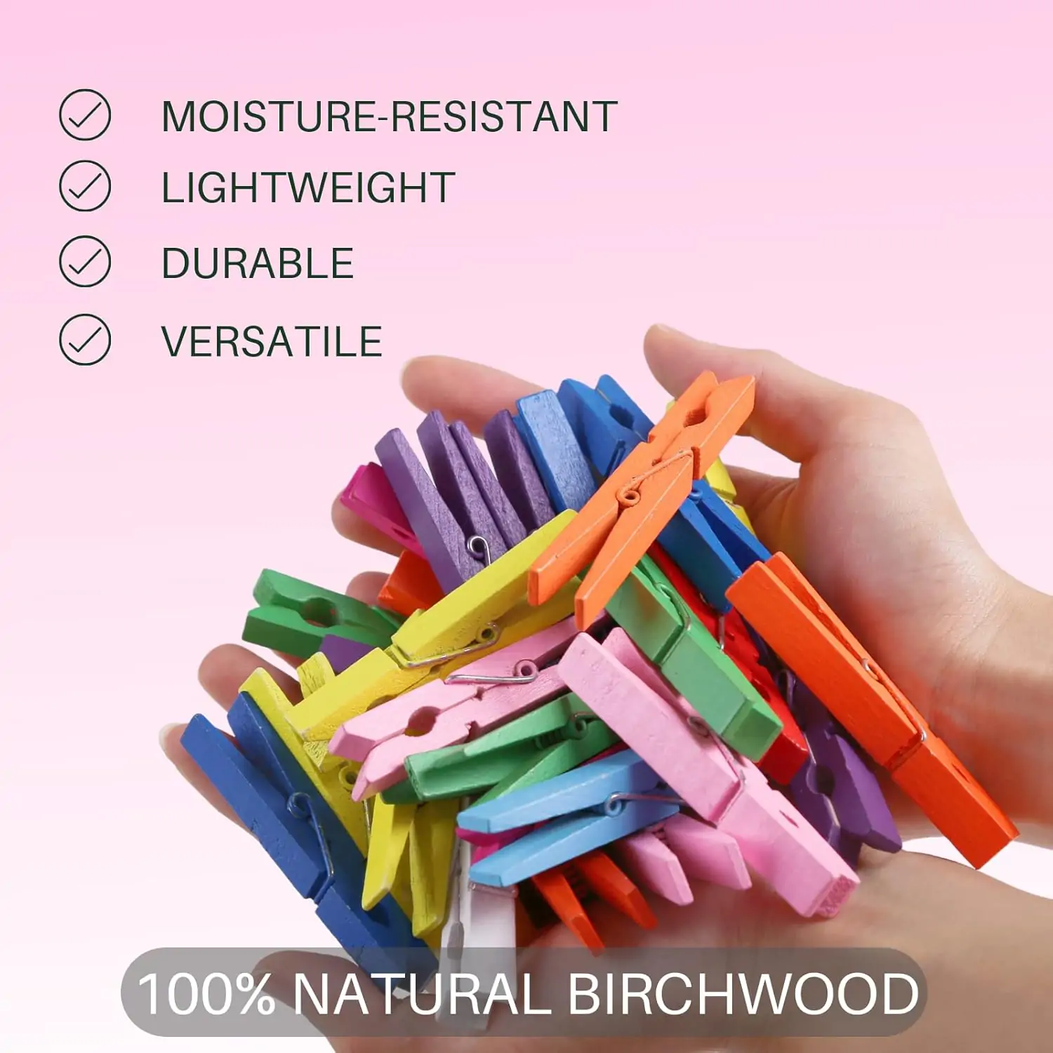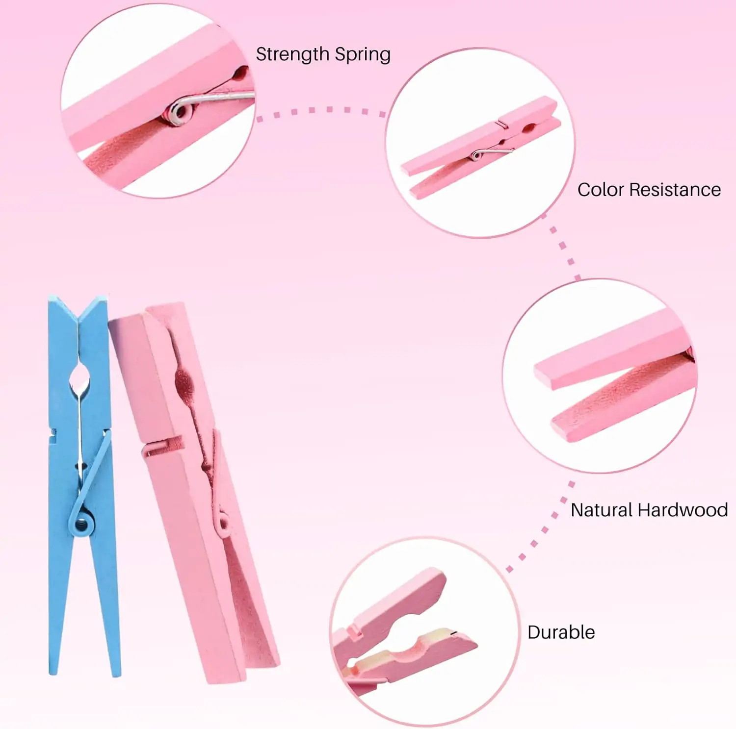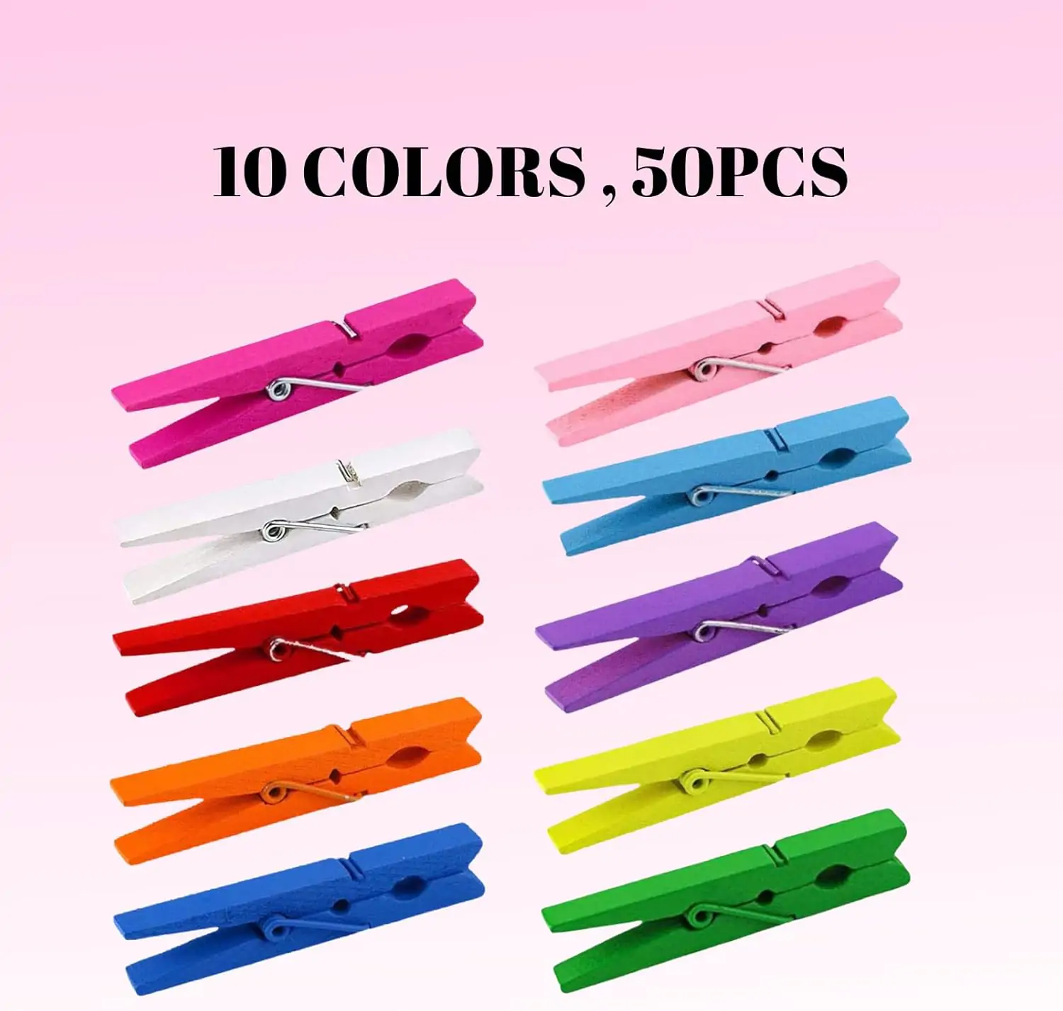 • Keep a stockpile on hand! This cloths pin clips bulk set includes 50 pcs colored wood clothes pins for hanging clothes.
